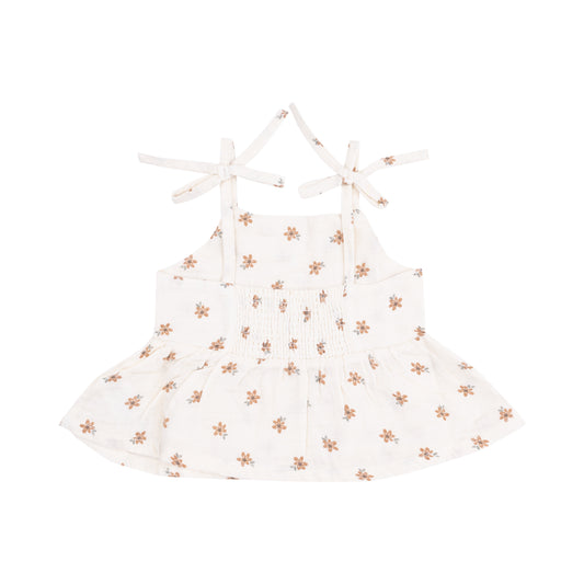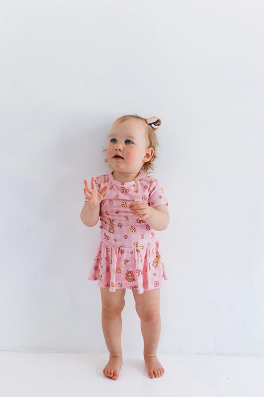 Ribbon Bouquets Circle Neck Ruffle Dress