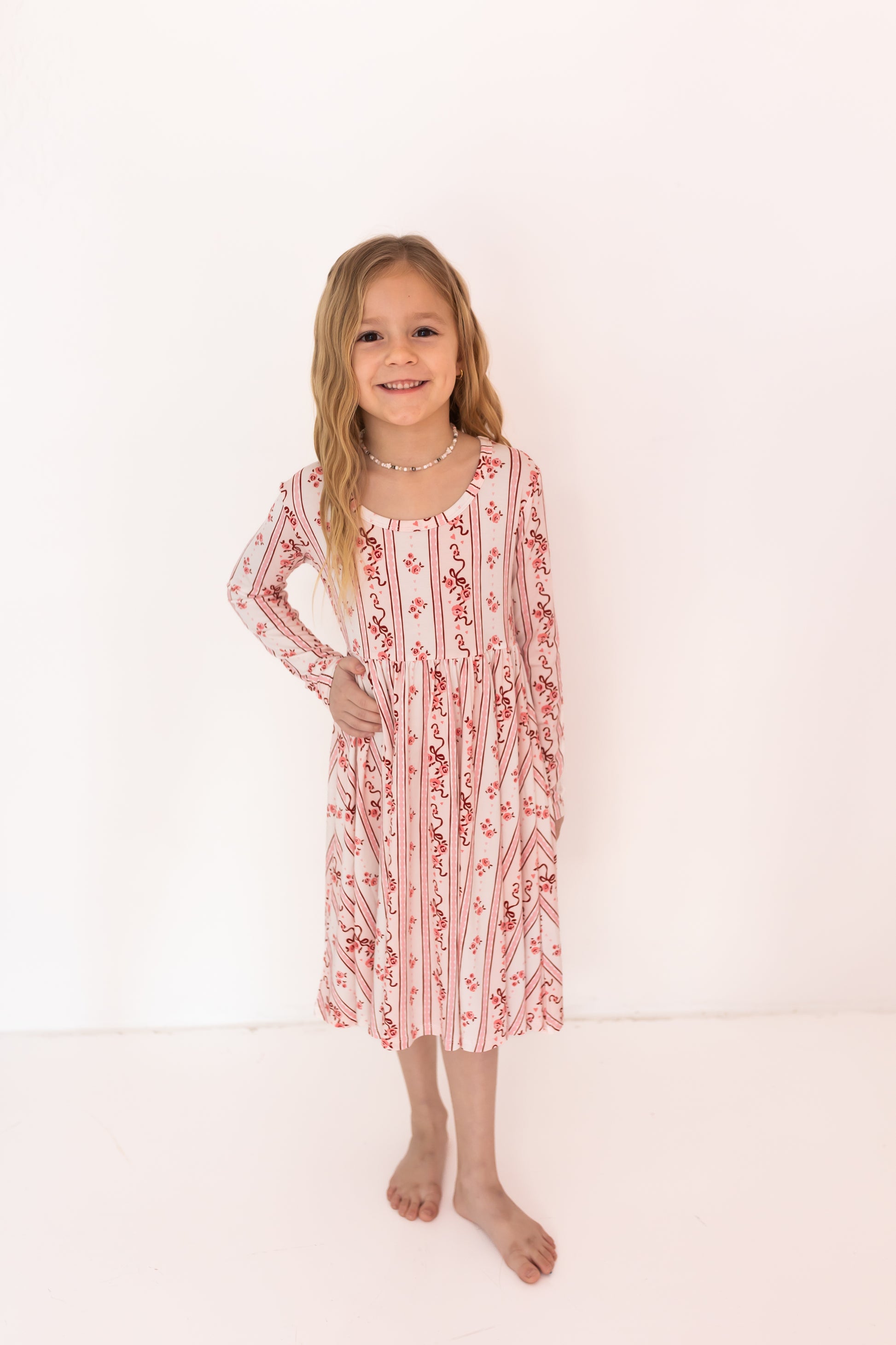 Meet Vintage Love, a timeless Valentine’s Day favorite designed to be worn long after the candy hearts are gone. This sweet pink and red print blends delicate florals with vintage inspired stripes for a look that feels nostalgic, cozy, and perfectly playful.