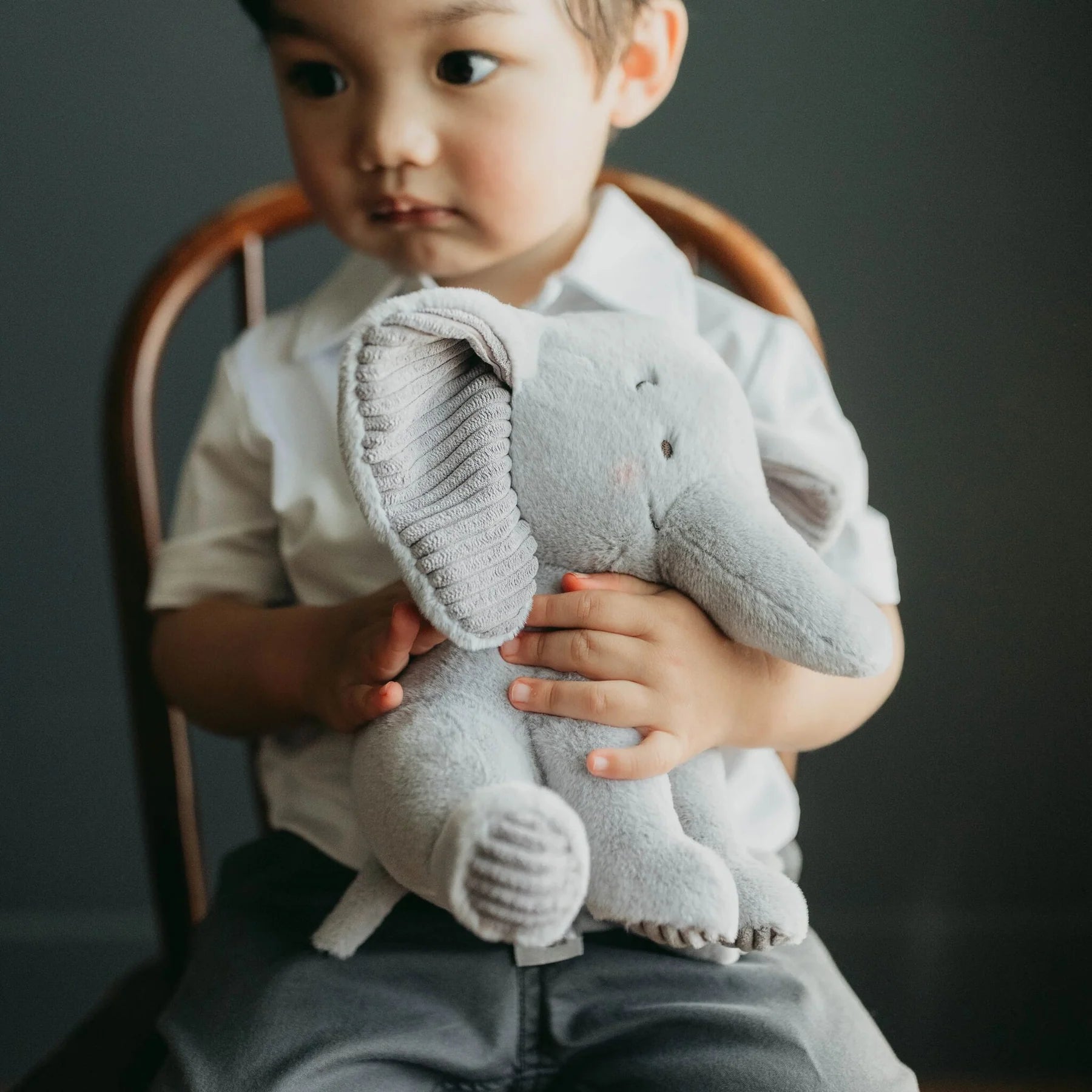 Say hello to Little Penny the Elephant, the smaller but just-as-snuggly version of our lovable Penny! With her silky gray fur, floppy corduroy-lined ears, tiny tail, and sweet embroidered face, this plush elephant is ready for big adventures in a smaller size.